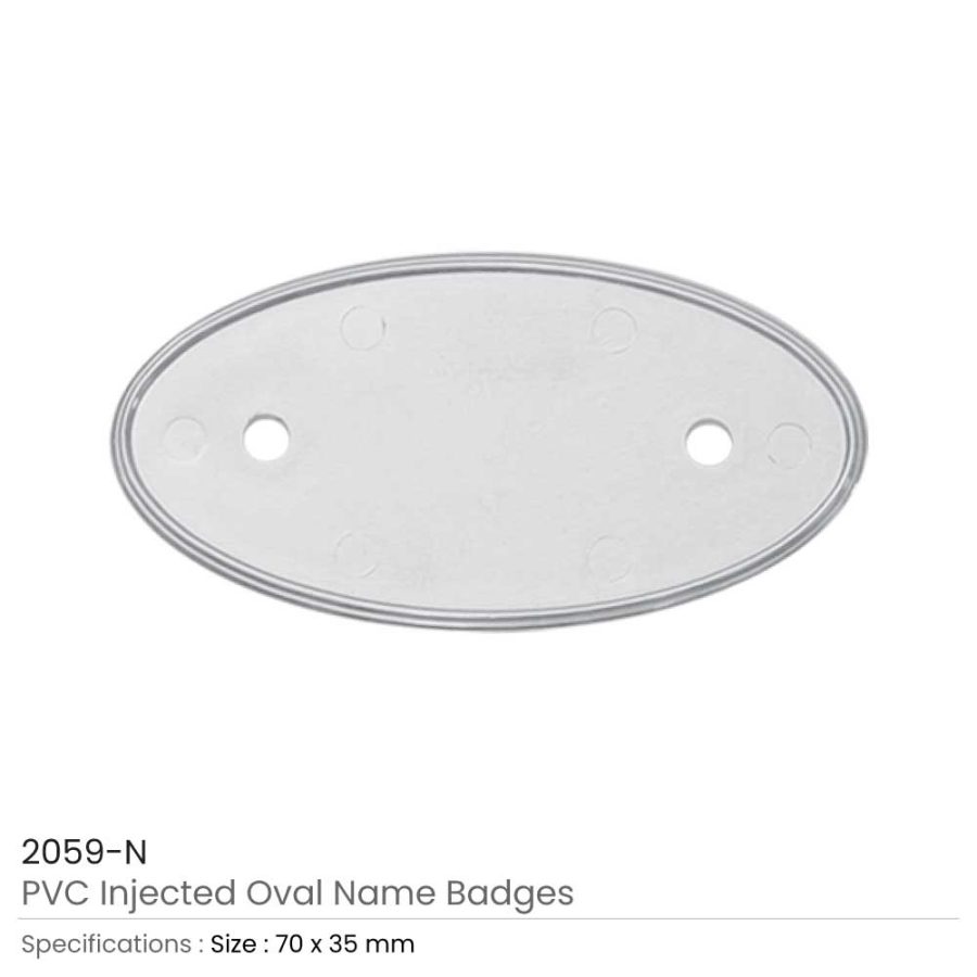 PVC Injected Oval Logo Badges made from durable PVC material, available in 75 x 35 mm and 242 x 60 x 50 mm sizes. Ideal for corporate branding, events, and promotions with high-quality digital printing and epoxy coating.