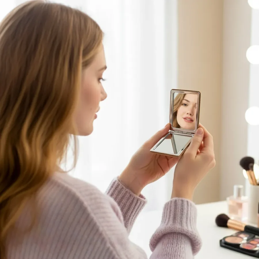 - Design: Foldable, compact rectangle pocket mirror (double-sided with one magnified side)