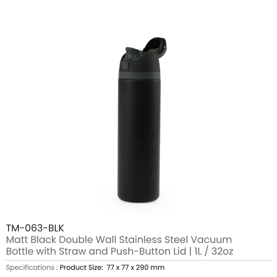 SS Bottles with Straw & Push Button Lid – Double-Wall Vacuum, 1Liter